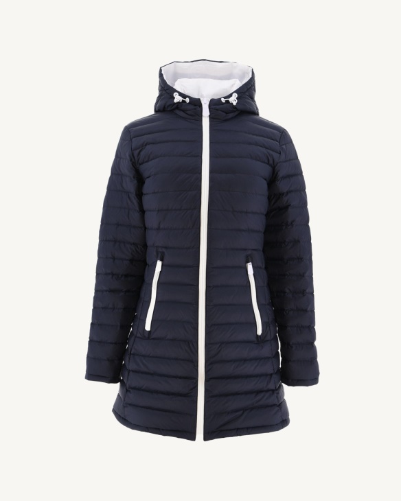 Mit Der Mittellangen Moscou-Daunenjacke Kannst Du Deinen Look Zu Jeder Tageszeit ändern! Reversibel, Wechselt Es Im Handumdrehen Von Einer Farbe Zur Anderen. Ultraleicht, Hat Es Einen Bequemen Und Eleganten Geraden Schnitt Und Eine Füllung Aus Federn Und Daunen. Moscou Hat Außerdem Eine Gefütterte Kapuze, Zwei Seitentaschen Mit Reißverschluss Und Eine Fronttasche Mit Klettverschluss.